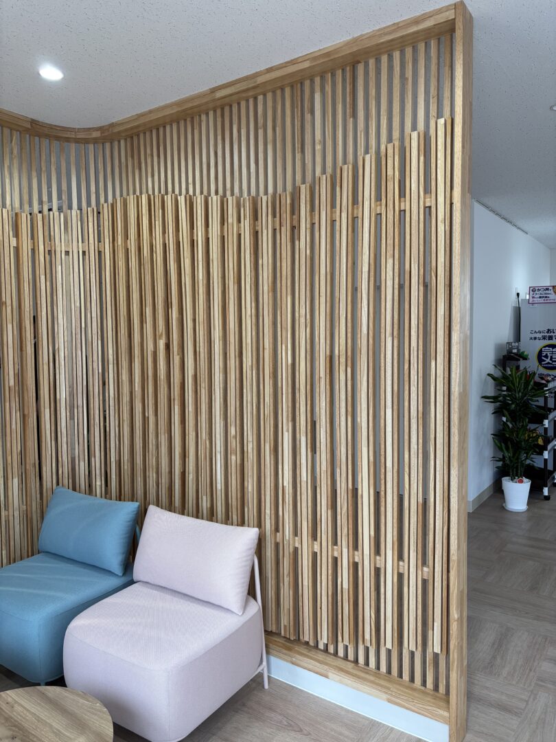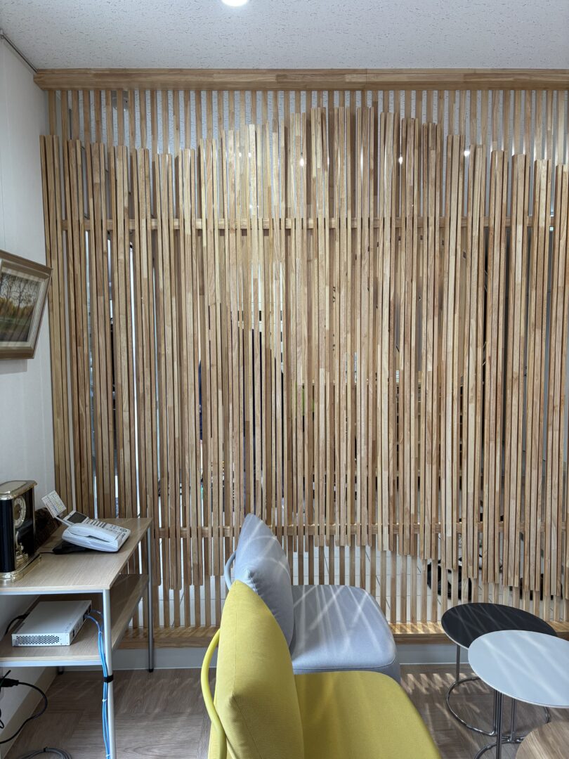 完成形 修正材にてルーバー状壁を設置